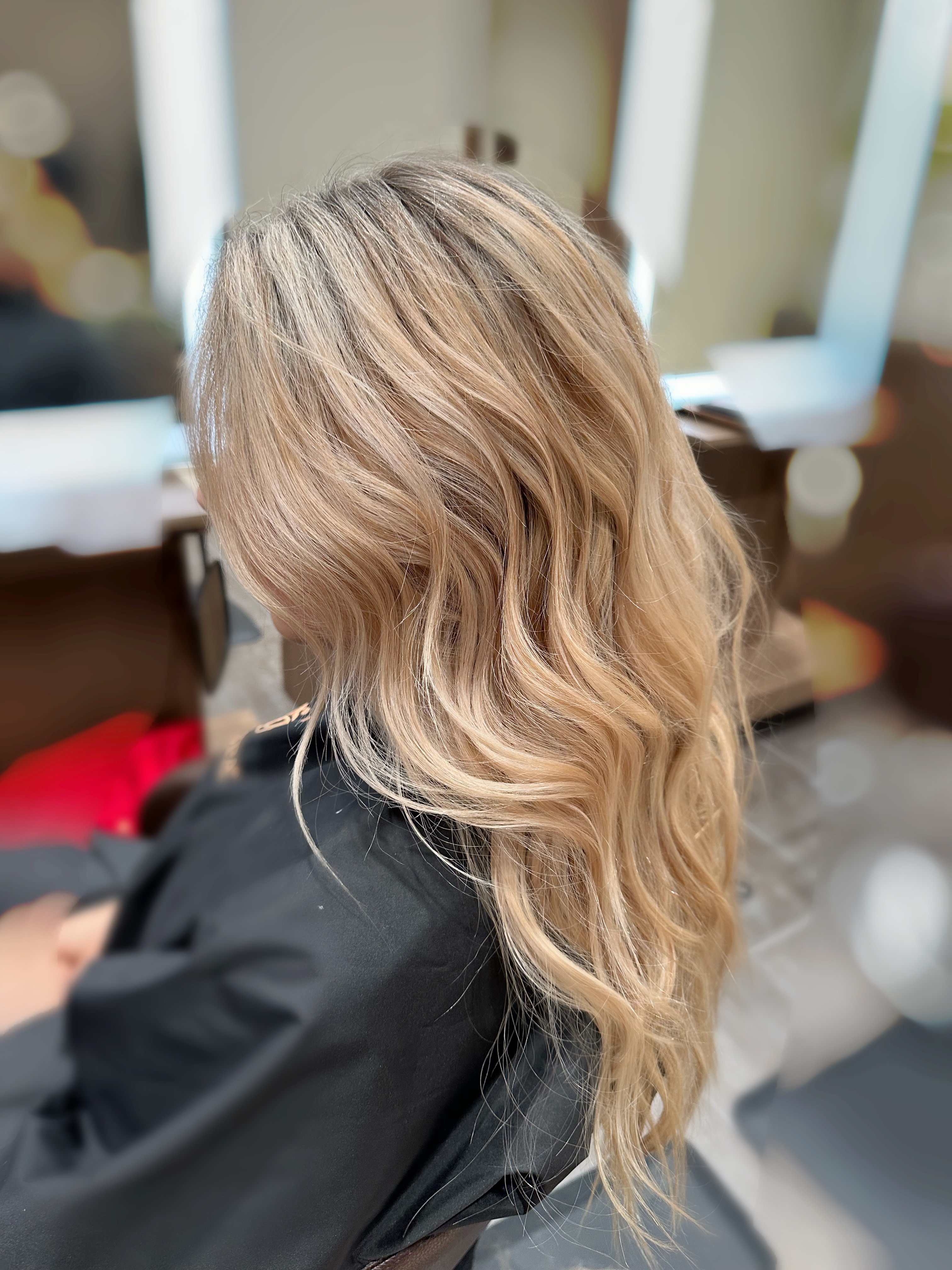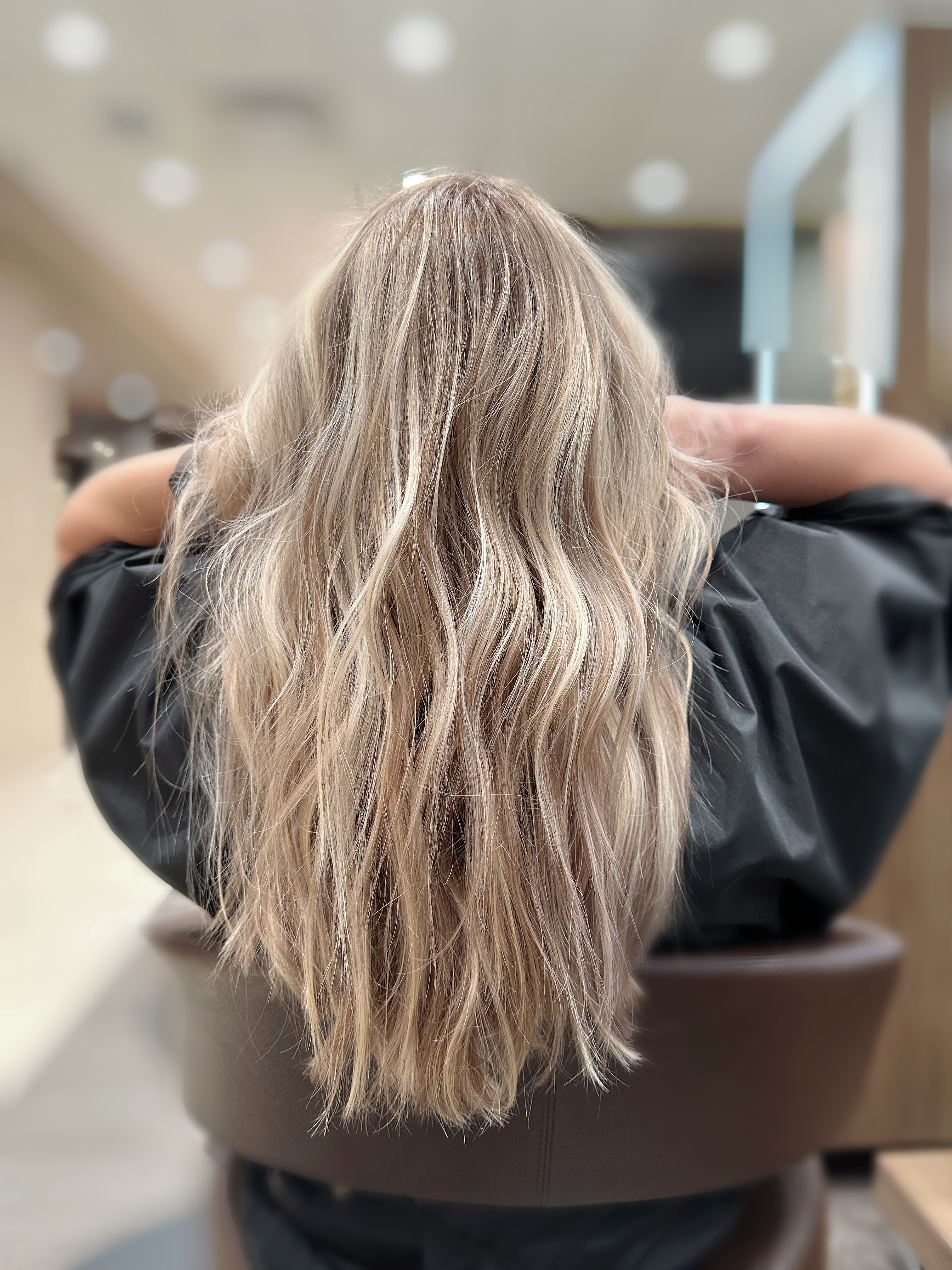 Our specialty is creating high-impact, customized looks through expert highlights, custom balayage, and premium hair extensions. Each service is thoughtfully designed to enhance dimension, blend seamlessly, and complement your natural features while maintaining the health and integrity of your hair. Whether you’re looking for bright, lived-in color or added length and fullness, every detail is tailored to deliver effortless, long-lasting results.